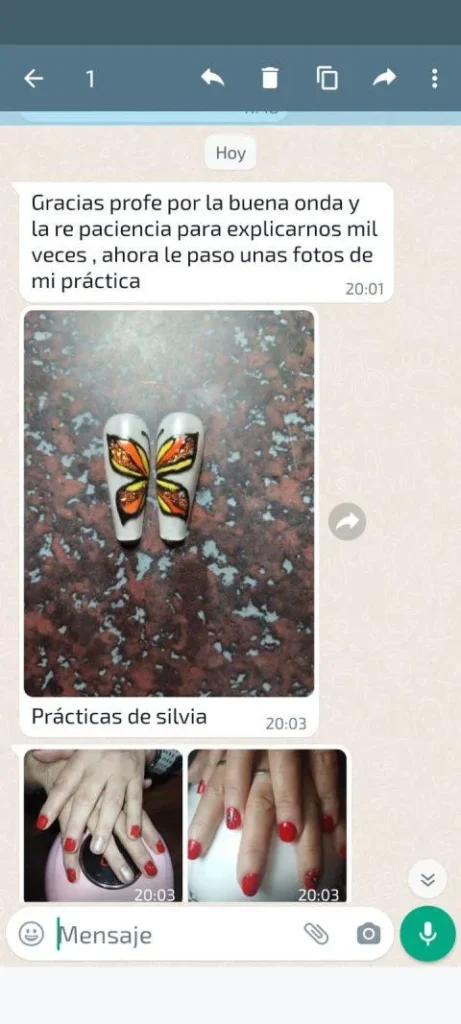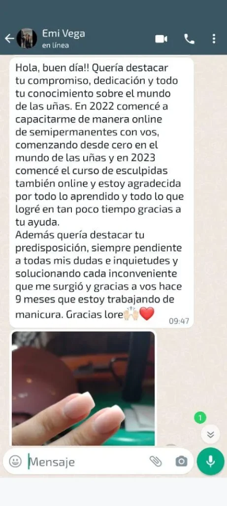 LUZ GARZÓNEstoy muy contenta con lo aprendido en este curso logre dominar esta técnica que ni sabia que existía en el mundo de las uñas a pesar que llevo mas de 4 años realizando manicura la verdad la mejor inversión en conocimiento que pude haber hecho gracias por compartir tu conocimiento Lorena