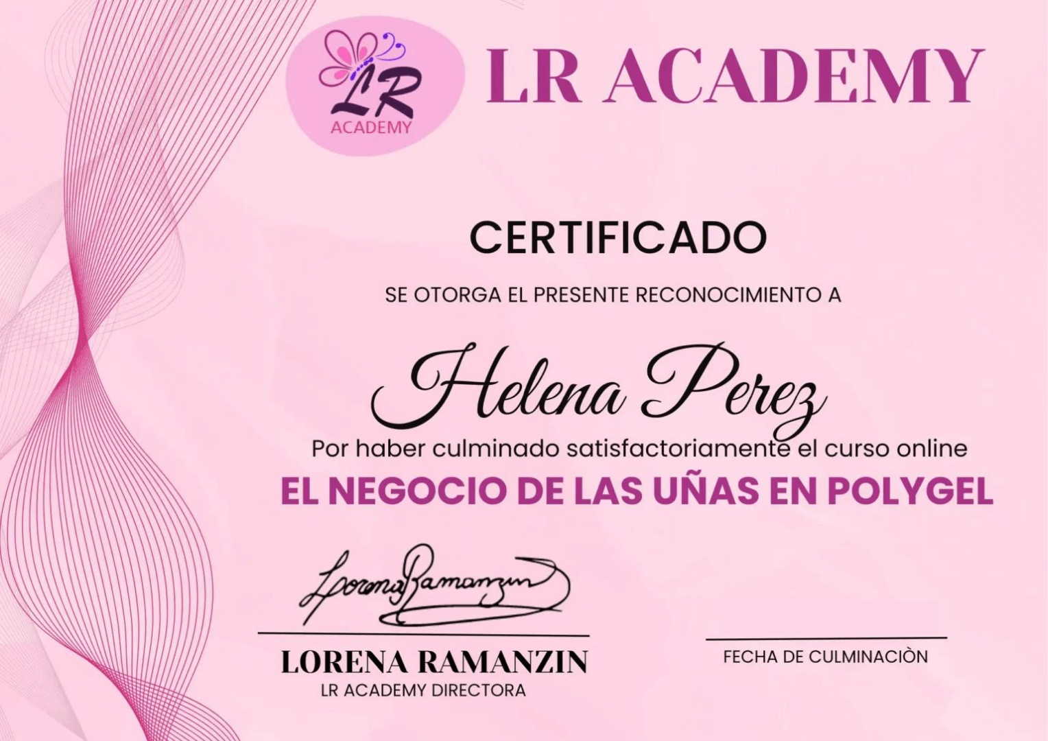 Cuando inicié el curso me di cuenta de la calidad y cantidad de contenido y quedé asombrada. Este curso está muy completo y te lleva paso a paso en cada técnica y que te dan las bases para ser un profesional en Polygel. Muy contenta con el curso, gracias